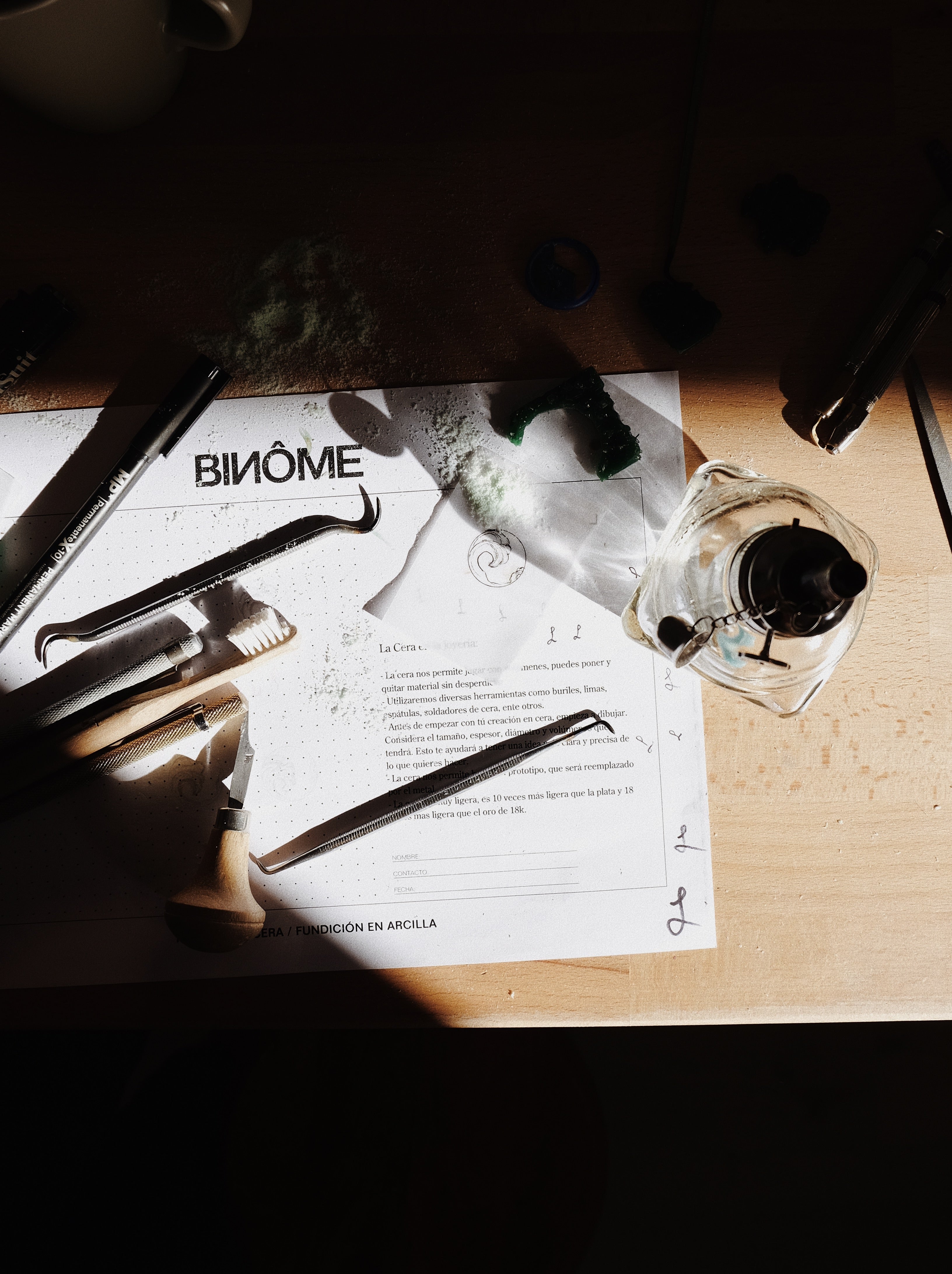 Este espacio ha sido concebido con la finalidad de fomentar nuestra creatividad y mostrar nuestro arte. No nos limitamos a considerarlo únicamente como una tienda, sino que el taller representa el núcleo donde se materializan el diseño, la escultura, la fundición y el pulido. En Binôme Atelier cada pieza de joyería cuenta su propia historia.